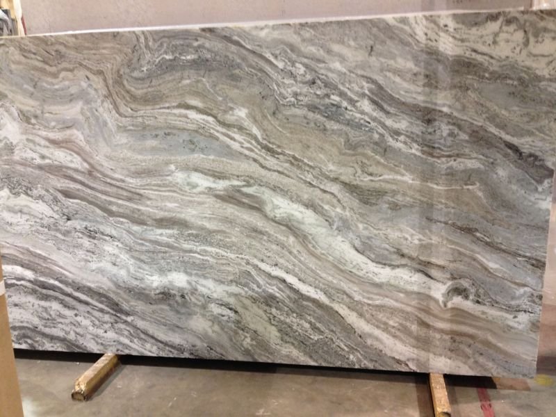 Use full slabs to enjoy the movement and waves. Proper seaming is advised for kitchen countertops fantasy brown installations to match the flowing veins.