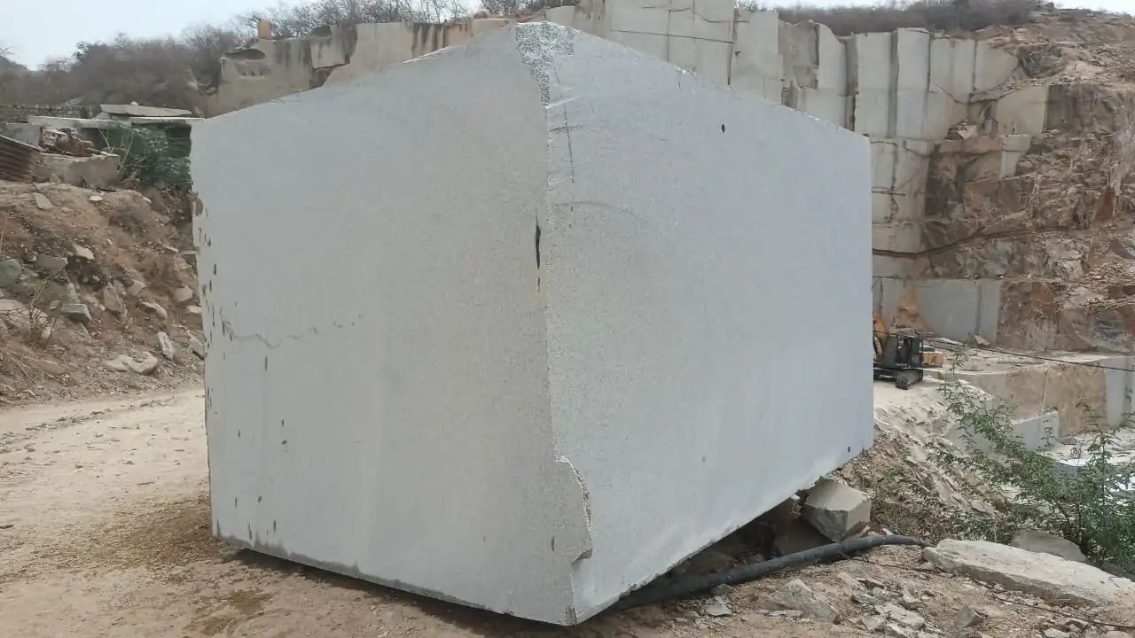 Quarrying Jirawal White Granite in block form allows for customization and precision in cutting and finishing, enabling it to be transformed into slabs or tiles that meet specific design needs. The large blocks can be processed into various sizes and shapes, offering flexibility for different projects, whether for countertops, flooring, or wall cladding.